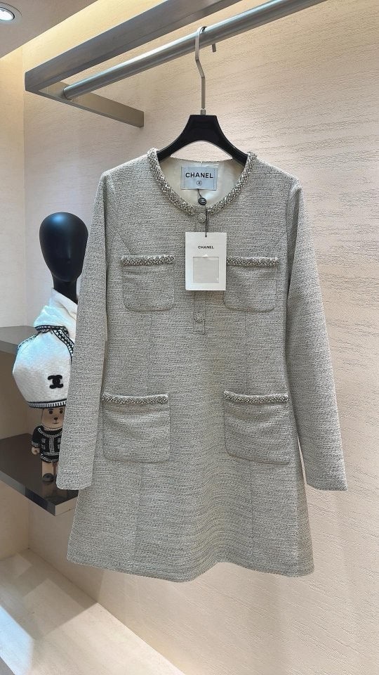 [샤넬 스타 다이아몬드 그레이 트위드 원피스]