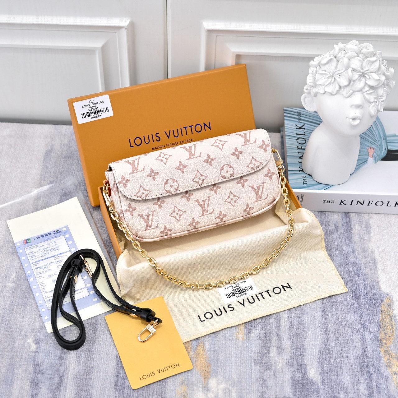 루이비통의 2024 크루즈 컬렉션에서 선보인 모노그램 듄(Monogram Dune) 캔버스 소재의 아이비 월릿 온 체인. 자석형 잠금장치가 달린 플랩을 열면 일상 필수품을 위한 메인 수납공간이 나타나는 트렌디한 미니 백. 탈착형 체인과 조절 및 탈착 가능한 가죽 스트랩을 활용해 다양하게 연출 가능한 아이템.