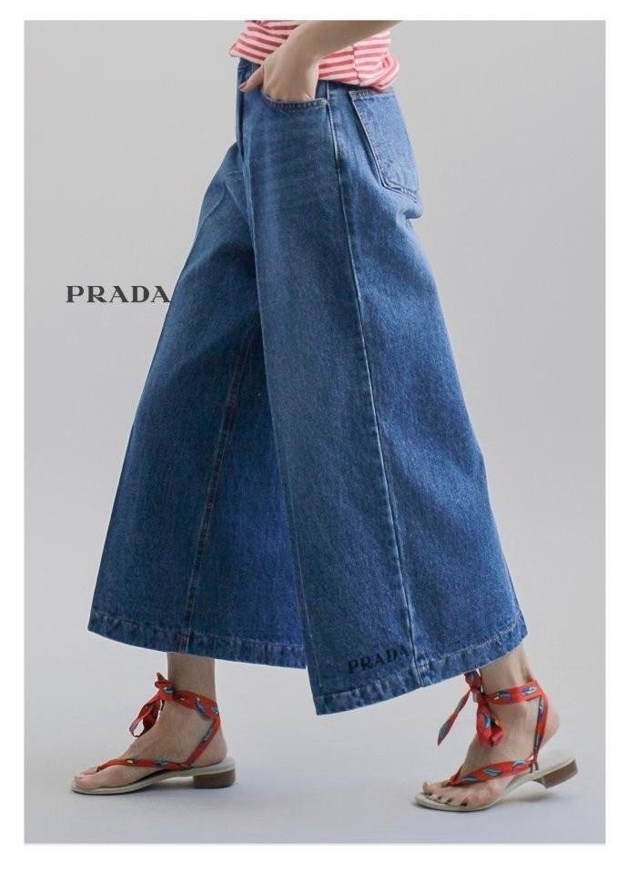 프라다 8부 와이드 데님 팬츠