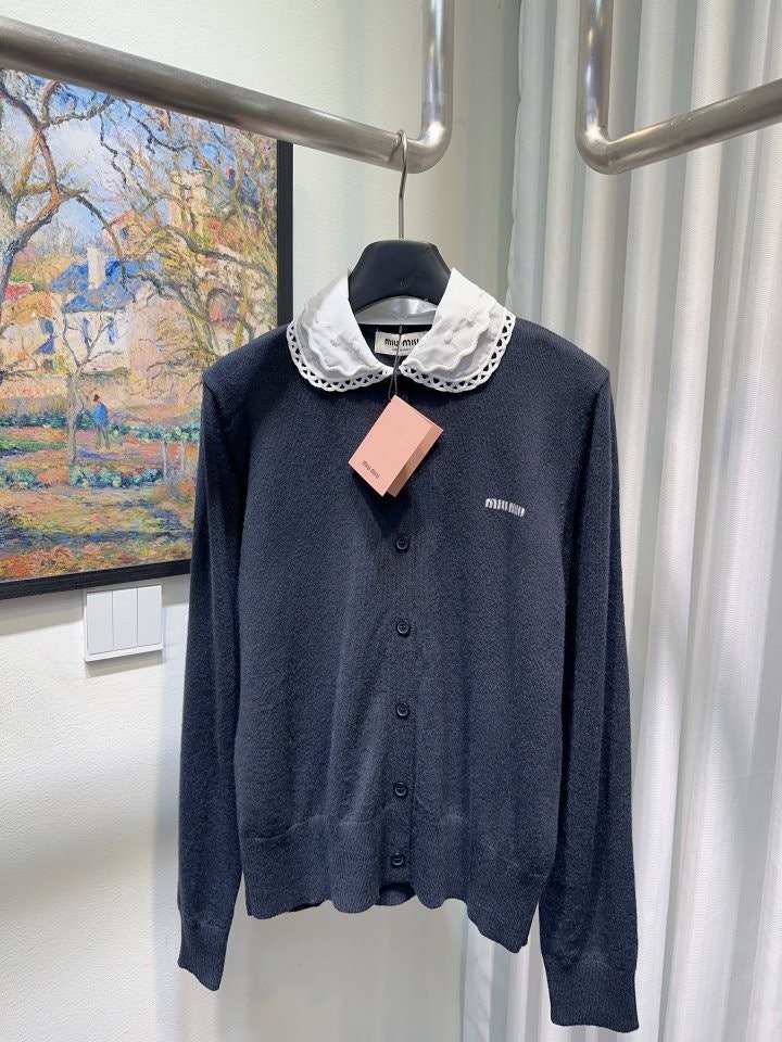 미우미우 자수 레이스 칼라 가디건