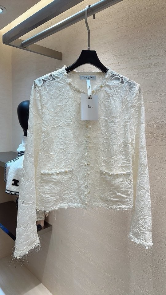 [디올 아이보리 레이스 자수 자켓]