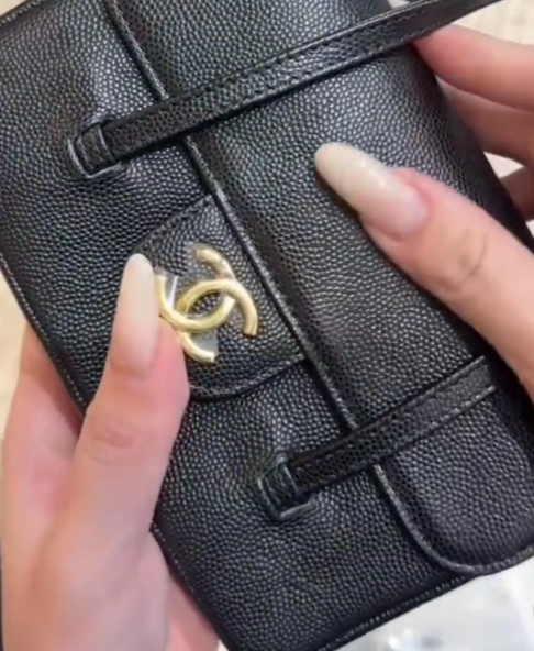 샤넬 로고가 딱 포인트로 있어서 너무 영롱하고 예뻐요! 가죽 결도 고급스럽고 마감 처리도 깔끔해서 실물이 훨씬 예쁩니다