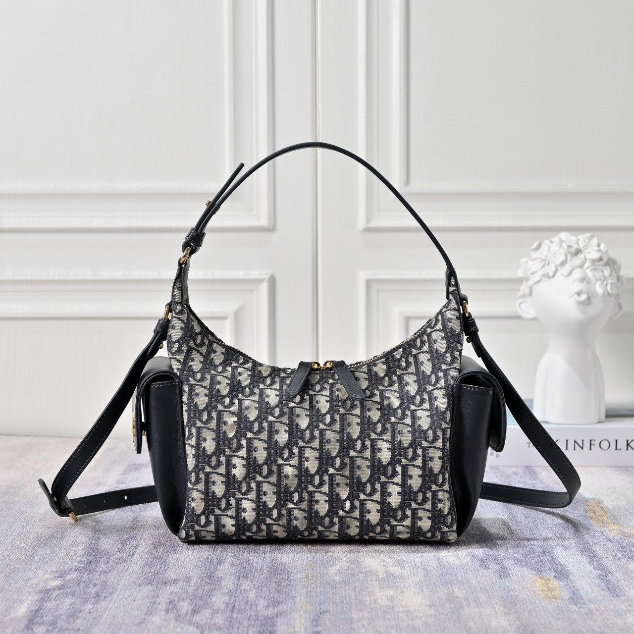 2025 겨울 시즌에 새롭게 선보이는 실용적이고 캐주얼하며 모던한 디자인의 D-Dream 백입니다. 블루 Dior Oblique 자카드 소재로 제작되었으며 부드러운 실루엣이 특징입니다. 넉넉한 지퍼 수납공간과 블루 송아지 가죽 소재로 제작된 양 옆면의 포켓 2개에 데일리 소지품을 모두 보관할 수 있으며, 포켓은 골드 피니시 메탈 CD 시그니처 장식의 자석 플랩이 돋보입니다. 길이 조절 가능한 탑 핸들 및 길이 조절 가능한 탈착식 가죽 스트랩으로 구성된 미디엄 백으로, 데일리 숄더백이나 크로스백으로 활용하기 좋습니다.