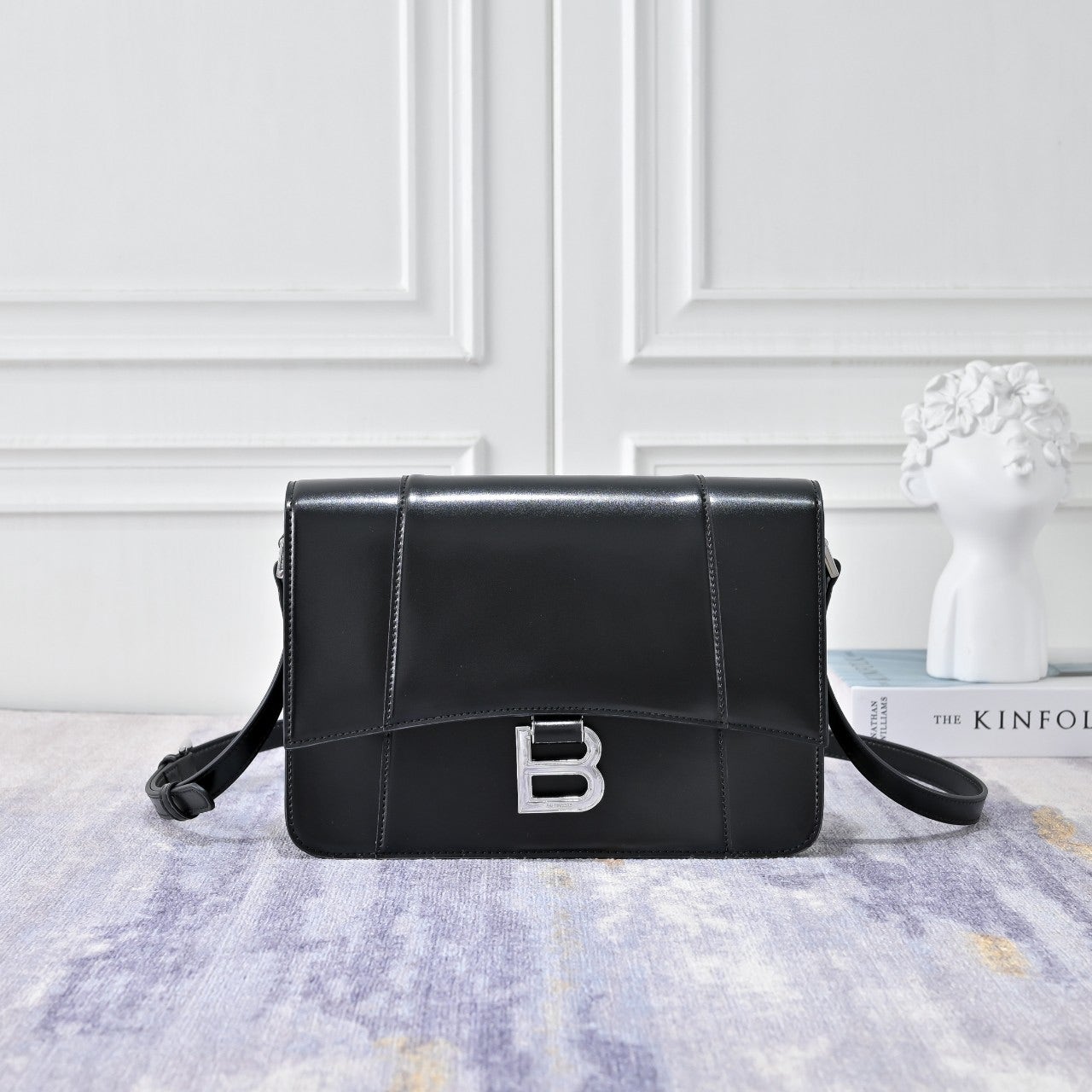 발렌시아가 아워글래스 플랩백 미디엄 블랙 은장