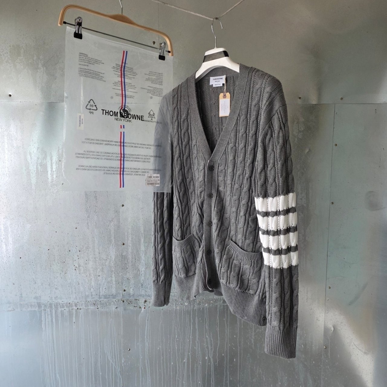 톰브라운 사선 케이블 니트 브이넥 가디건