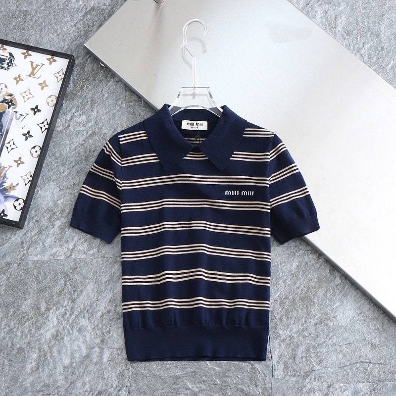 미우미우 신상 여성 단가라 패치로고 포인트 쿨니트 카라티