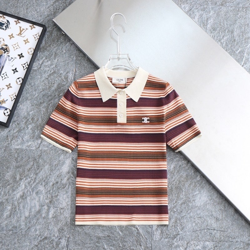 셀린느 신상 여성 스트라이프 쿨니트 배색 카라티