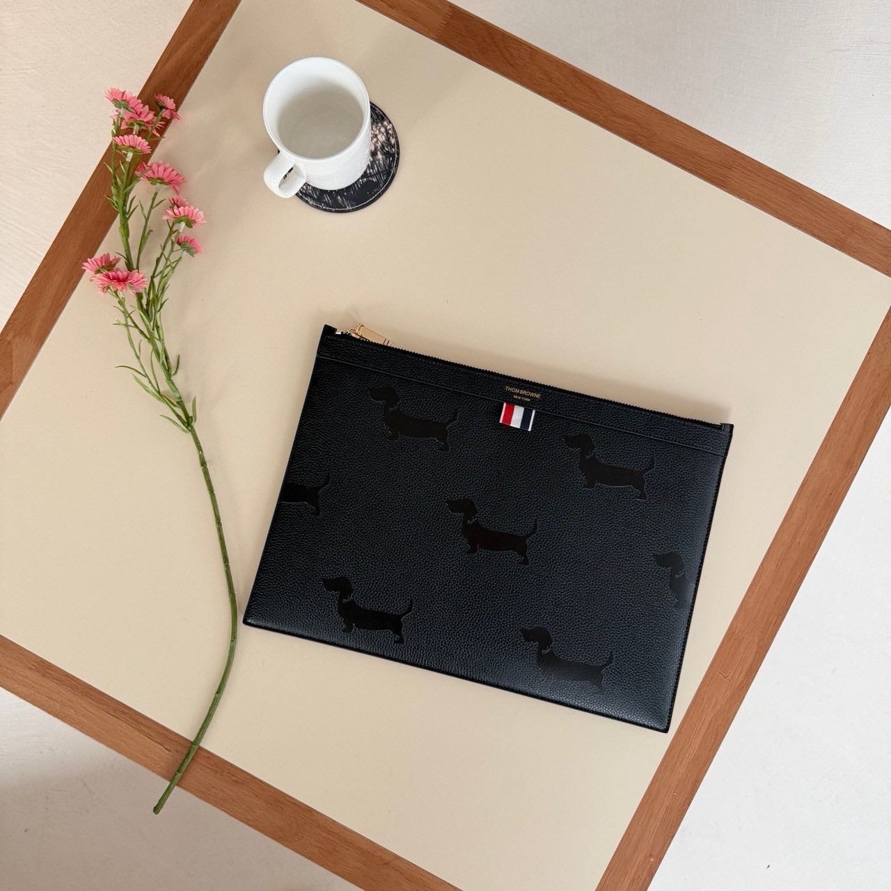 톰브라운 도그 패턴 삼선 로고 클러치