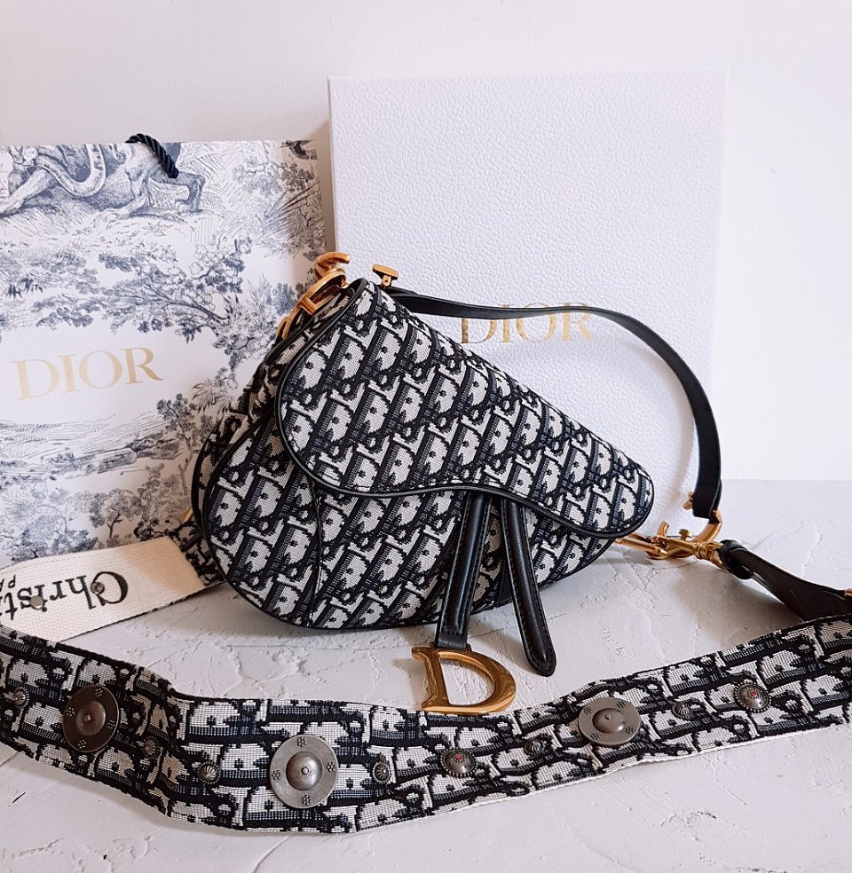 디올 오블리크 클래식 다크네이비 미듐 새들백