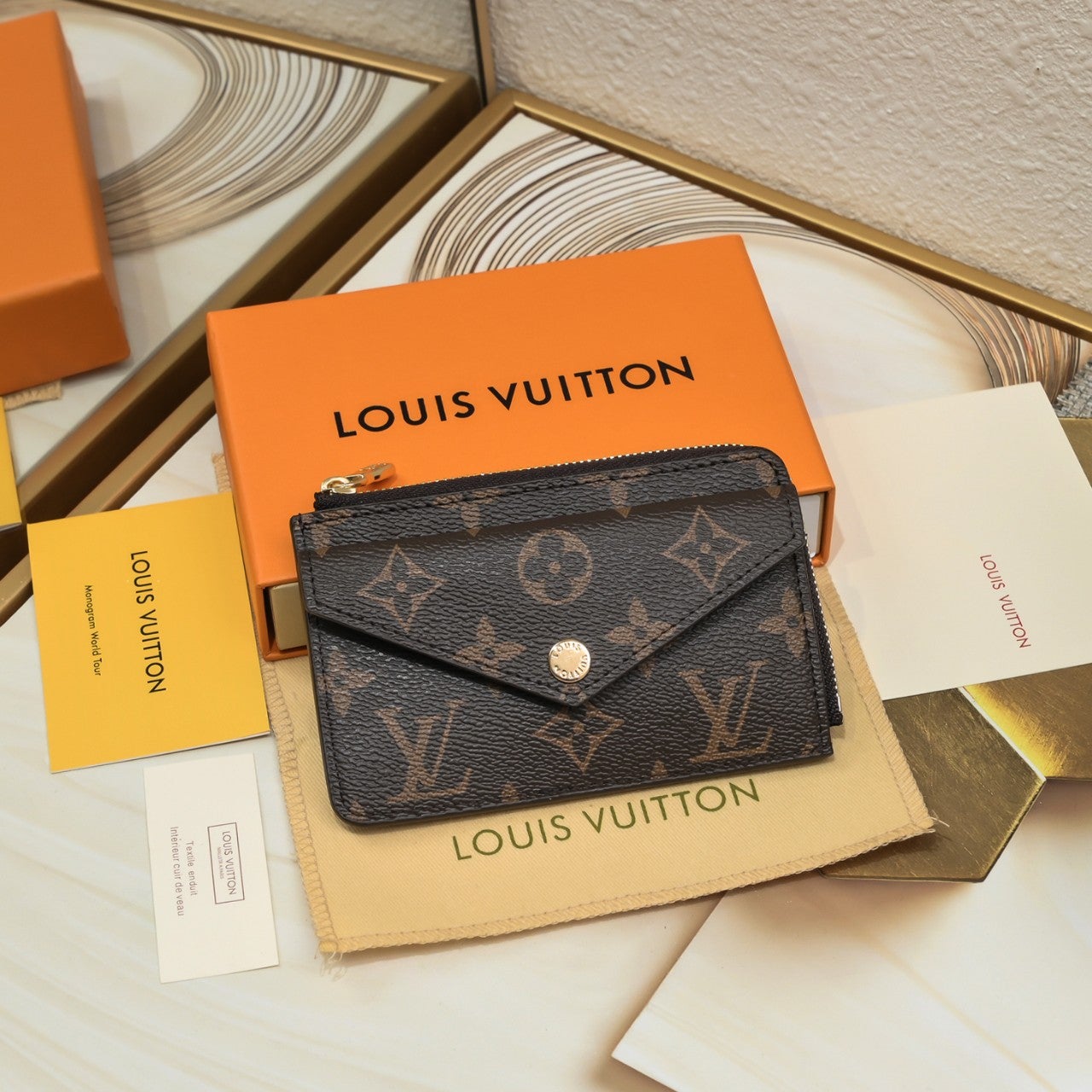 모노그램 캔버스와 스마트한 가죽 트리밍이 조화를 이루는 카드 홀더 렉토 베르소. 엔벨로프 스타일의 앞면 포켓, 지폐를 접어 보관 가능한 중앙 포켓 및 L 모양의 넓은 입구가 있는 동전 수납공간. 뒷면에 세 개의 카드 슬롯을 더한 독창적인 디자인이 돋보이는 올인원 액세서리. 후크를 활용하여 백이나 벨트에 매달 수 있는 아이템.