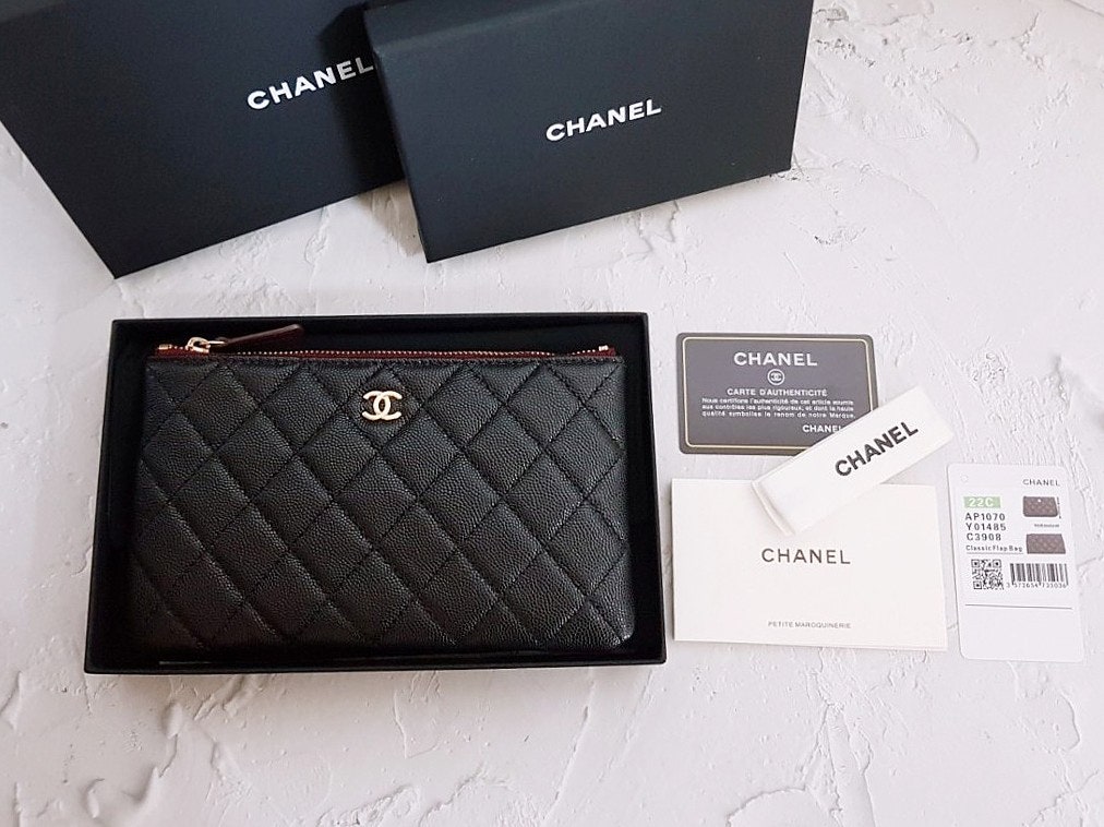 샤넬 캐비어 파우치 스몰 클러치 금장