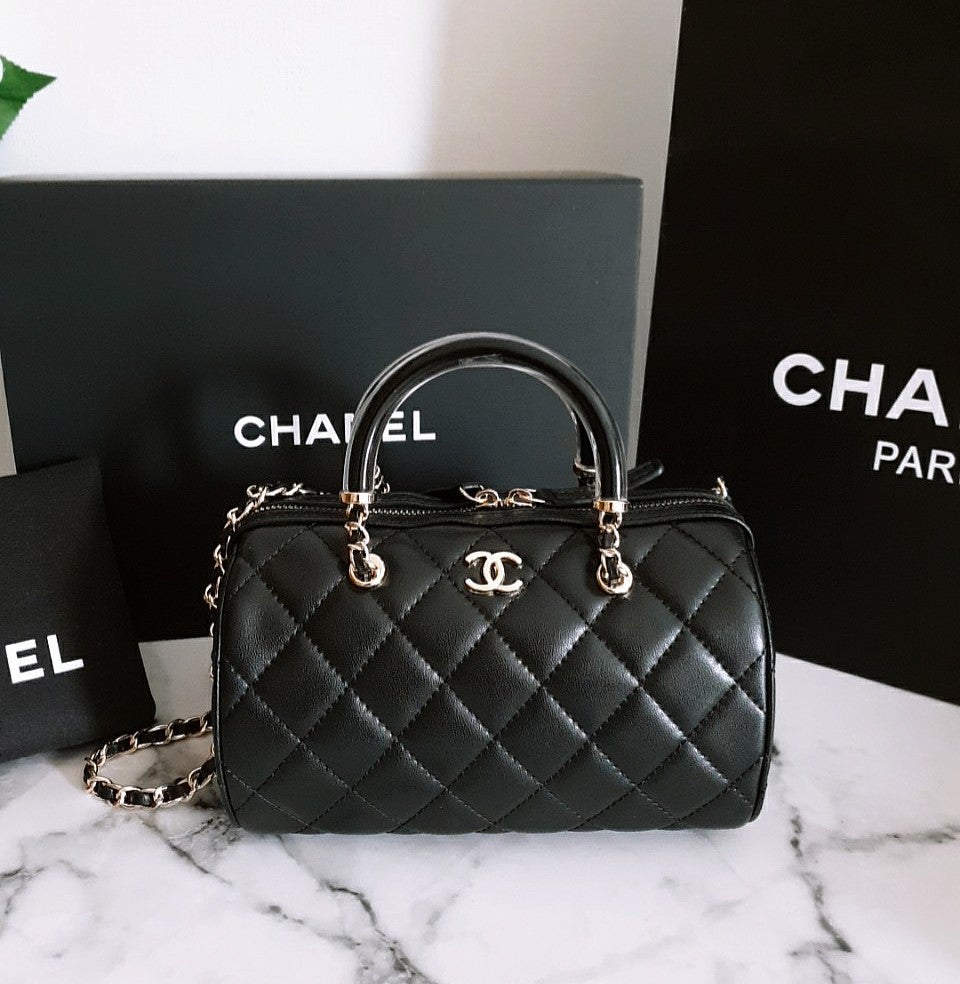 샤넬 25 크루즈 램스킨 탑핸들 미니 볼링백